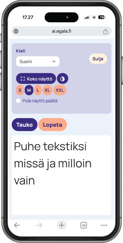 - Kuulemasi tekstin voit lukea reaaliajassa puhelimen, tabletin tai tietokoneen näytöltä.